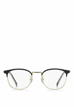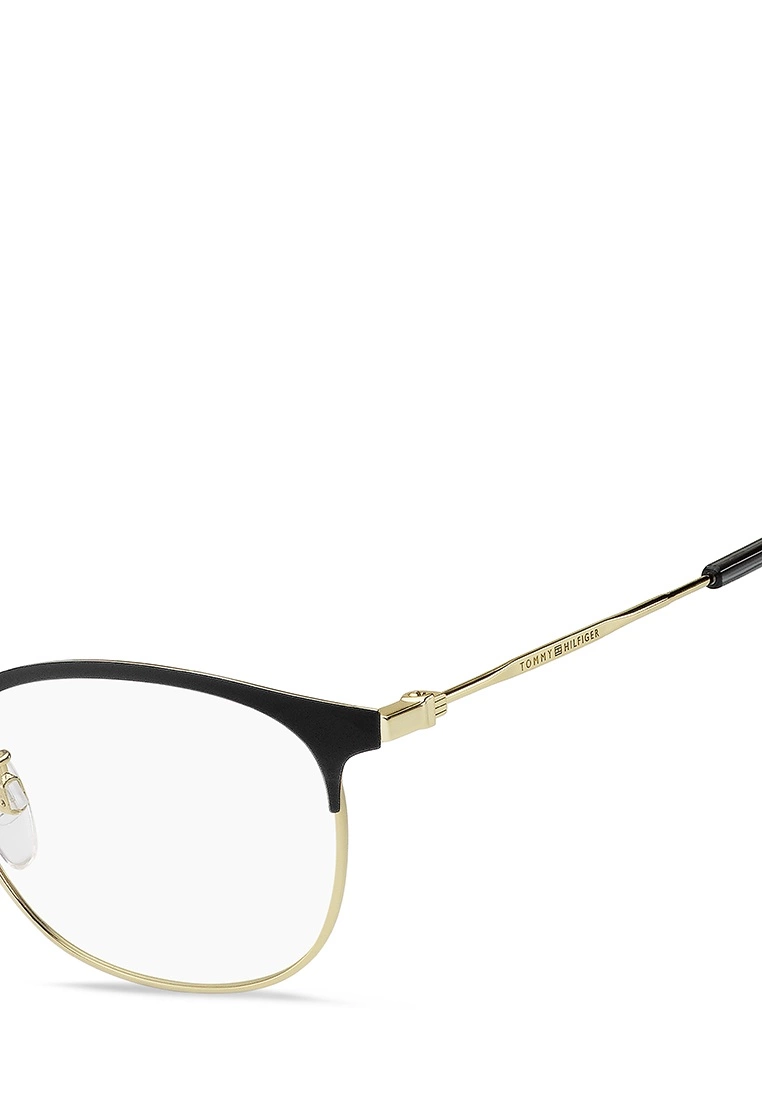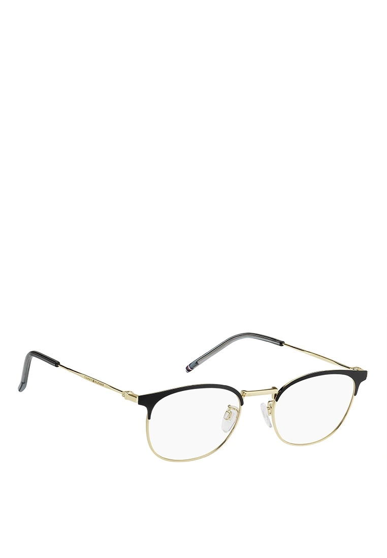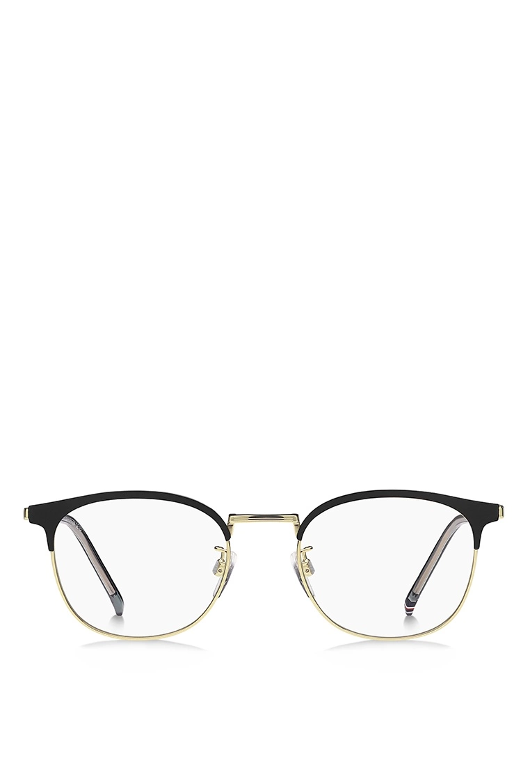 These eyeglasses are characterised by an original geometric silhouette, comfortable nose pads and a lightweight metal frame. An iconic TOMMY HILFIGER ribbon in red, white and blue trims the comfortable acetate end tips. Asian fit. Metal frame on-trend colours and the glamorous proportions of these TOMMY HILFIGER glasses will complete every outfit with essential class.
