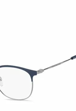 These eyeglasses are characterised by an original geometric silhouette, comfortable nose pads and a lightweight metal frame. An iconic TOMMY HILFIGER ribbon in red, white and blue trims the comfortable acetate end tips. Asian fit. Metal frame on-trend colours and the glamorous proportions of these TOMMY HILFIGER glasses will complete every outfit with essential class.