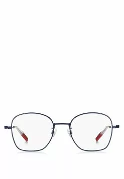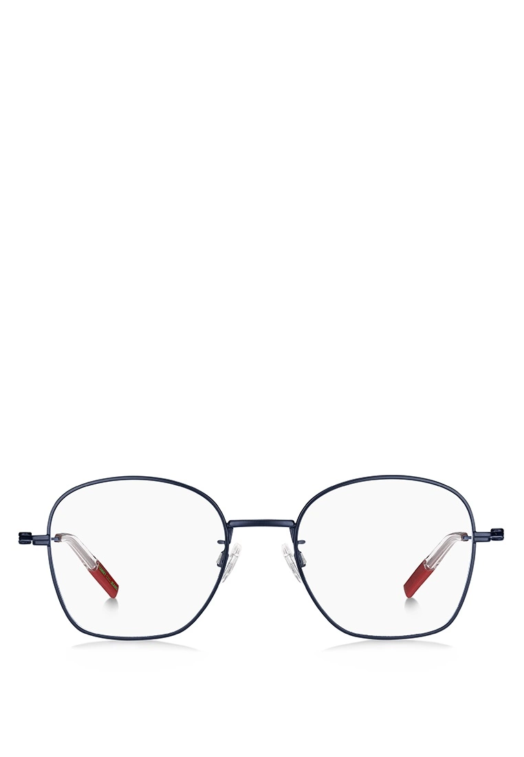 Sustainability is cool, and these eyeglasses by TOMMY JEANS are proof, with their modern, geometric look and earth-friendly spirit, signalled by the green logo on the inside of the temples.